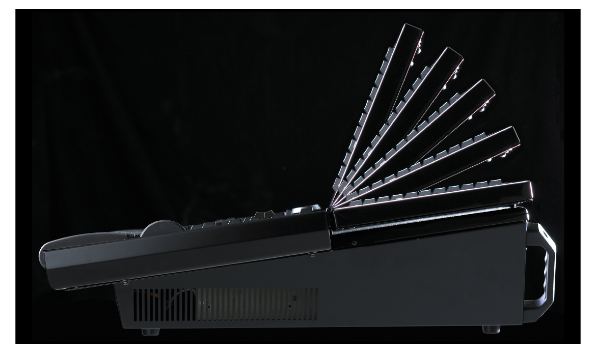 Real-time control for up to 65,536 parameters per session in connection with MA NPU (equivalent to 256 DMX universes) 8,192 HTP/LTP parameters 6 DMX outputs 3 internal TFT wide mode touchscreens (15.4" WXGA) 2 external TFT screens can be connected (UXGA, touchscreens accepted) 1 internal command screen – multi-touch (9" SVGA) 30 motorized executor faders Integrated keyboard drawer Built-in uninterruptible power supply (UPS) 2 etherCON connectors, 5 USB 2.0 connectors Motorized monitor wing 2 motorized A/B fader 100mm Individually backlit and dimmable silent (clickless) keys