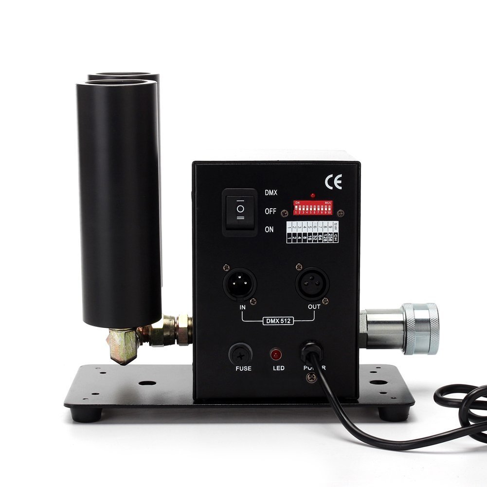 Model: Mounted CO2 Dual Nozzle Cryo Jet COA: Manufactured In The USA Voltage: 110 VAC 50/60HZ(220 VAC Available) Operation: Power On/Off DMX: Linkable Yes, via DMX Dimmer/Switch Height: 12 Inches Length: 7 Inches Width: 5 inches Weight: 9 lbs. Output: High Output With High Or Low Pressure Dewar Tanks Reach: Approximately 25'-35' feet Pressure: Rated For Up to 1100 psi