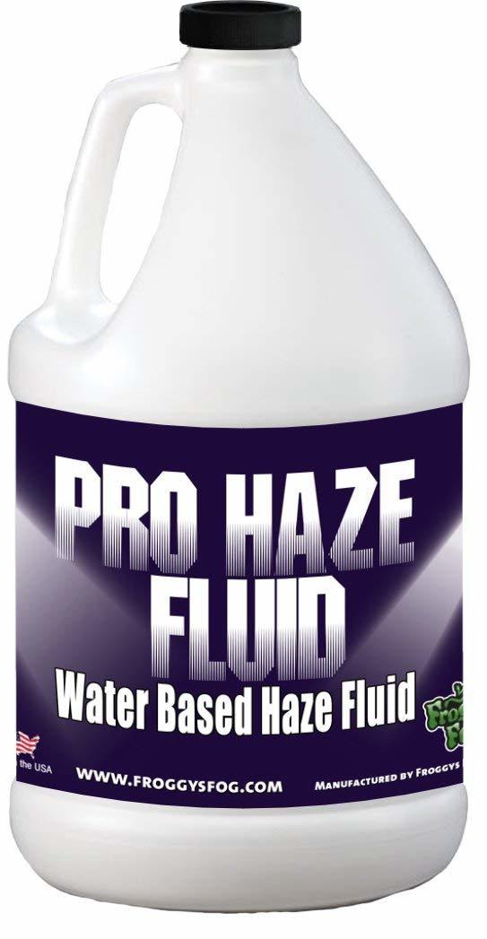 Froggys Pro Haze Fluid is a water based haze juice designed to generate an excellent haze through any facility or venue for defining light beams and other specialty effects. It is a perfectly composed haze liquid that produces a pure, translucent haze with a long hang time and low moisture content. Compatible with virtually all water based haze machines. Froggys Pro Haze Fluid is practically odorless, and when used properly will produce the perfect effect for your lighting needs. It is made from the highest quality pharmaceutical grade chemicals and with the amazing results you will see from this fluid, it makes Froggys Pro Haze Fluid the perfect alternative to high priced retail hazer fluids. All Froggys Fog and Haze Fluids are made from lab-grade UV-Filtered de-ionized water and pharmaceutical grade chemicals, each approved by the FDA.